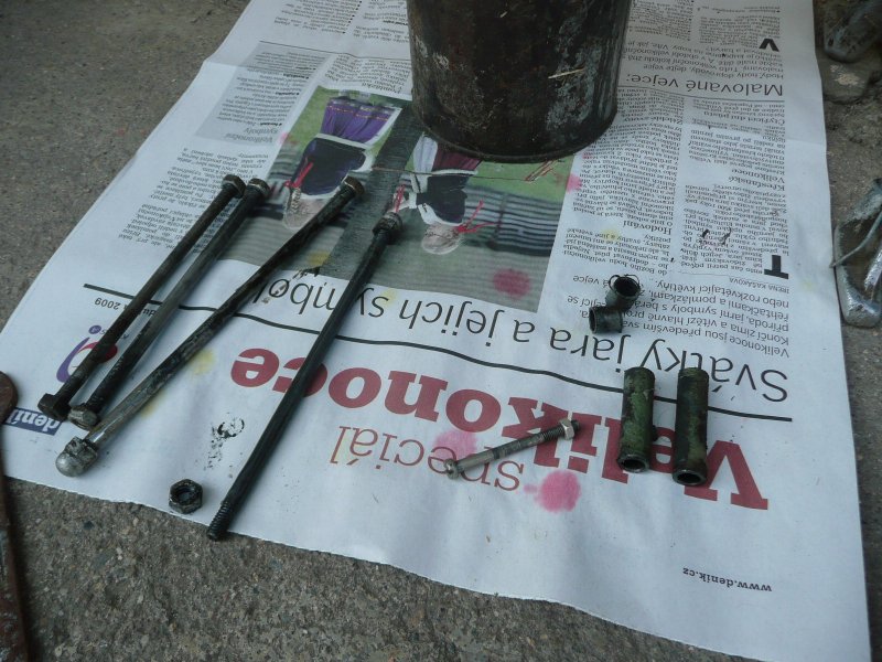 Svorníky. Ty válečky vpravo byly na zadním svorníku mezi motorem a plechama.