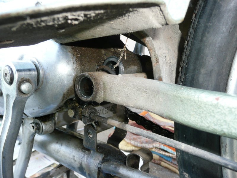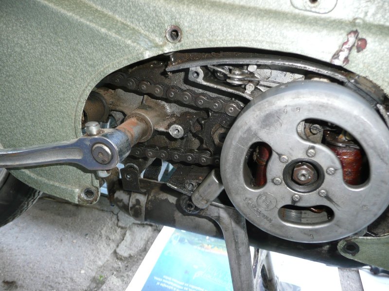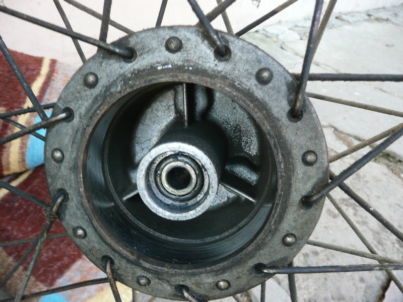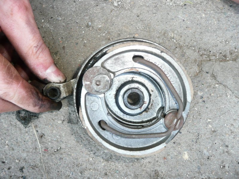 Tohle je vnitřek zadní bubnový brzdy. Nevěděl jsem jak mam vyndat řetěz, tak jsem vyndal i zadní kolo. Stačilo ale rozpojit řetěz a bylo by.